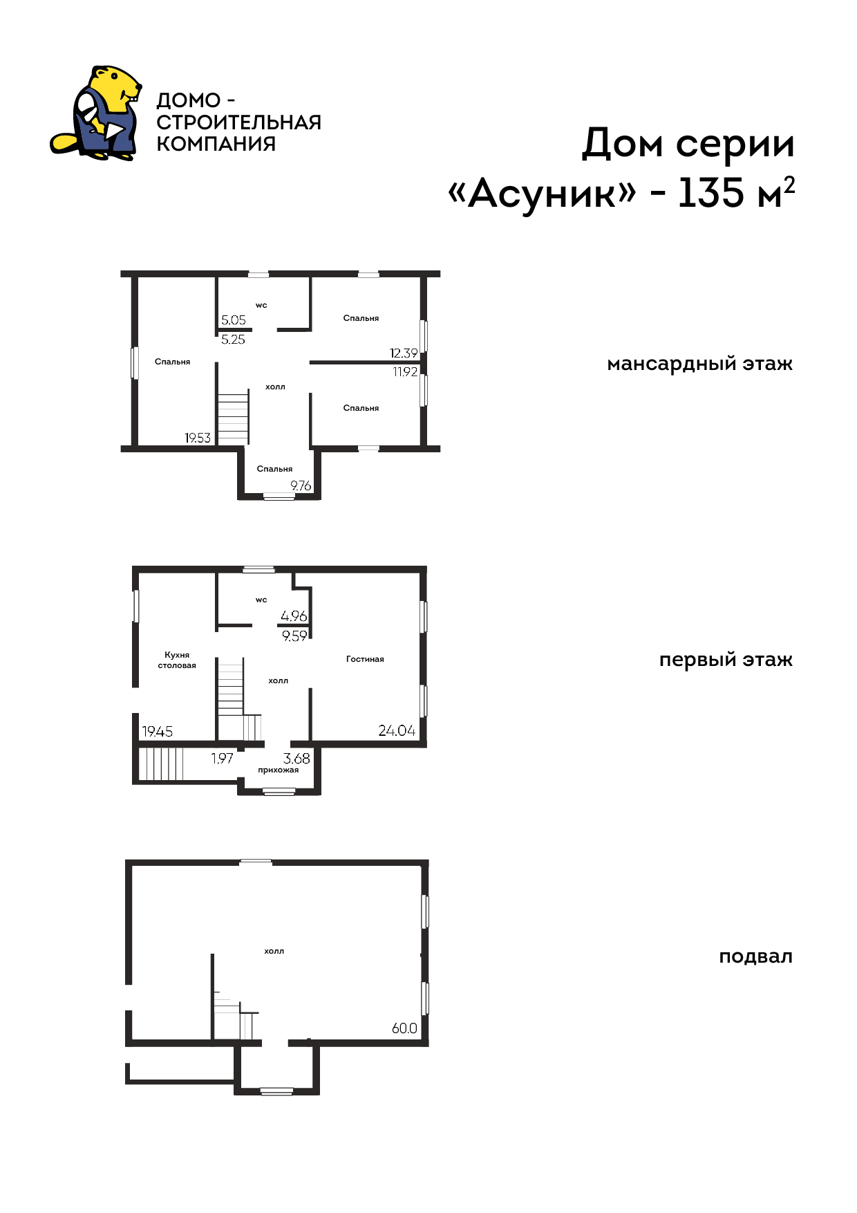 - 195,9 м2, в том числе подвал - 60 м2